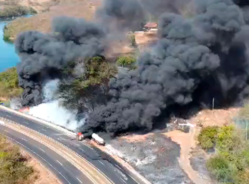 Colisão entre dois bitrens, seguido de incêndio e vazamento Biodiesel.