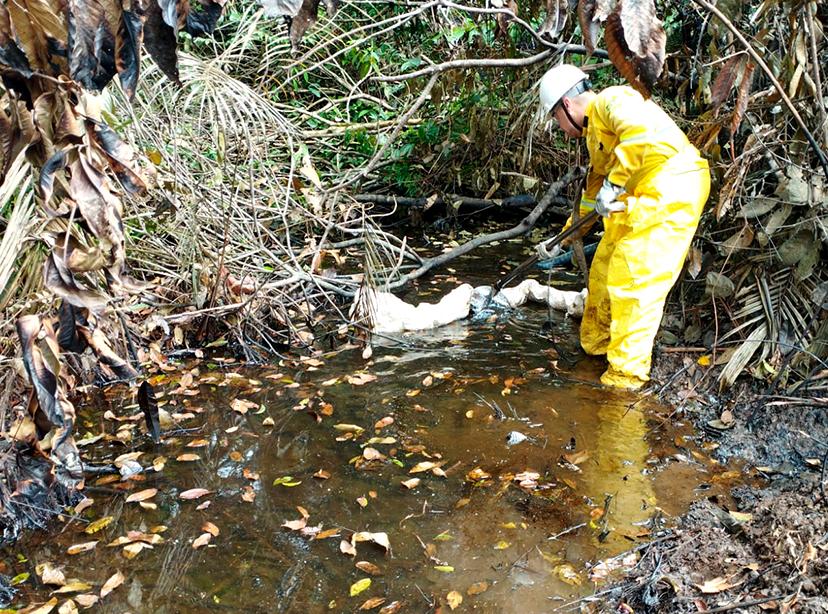 Contaminação de solo e área de igarapé, em reserva indígena.