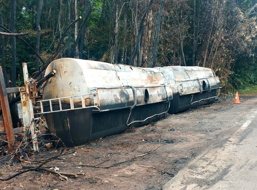 Tombamento de carga de gasolina com incêndio e contaminação em território indígena, no coração da Amazônia.